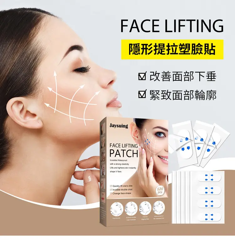 4分鐘前面部提拉瘦臉貼 提拉緊緻,快速擁有小V臉,美美噠超隱形,真的好好看 - 【體驗組】一盒(120貼) 免運費-NT$950