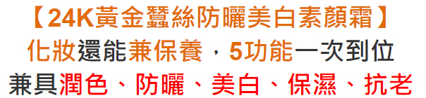 12分鐘前【黃金蠶絲防曬美白素顏霜】榮登素顏界的天花板!脫口罩後必收「媽生霜」登場,化妝保養兼防曬1瓶hold全場!!美白、淡斑、防曬,三效合一,夏日必備這一瓶就夠了! - 【最優惠】買三送五 NT$1399