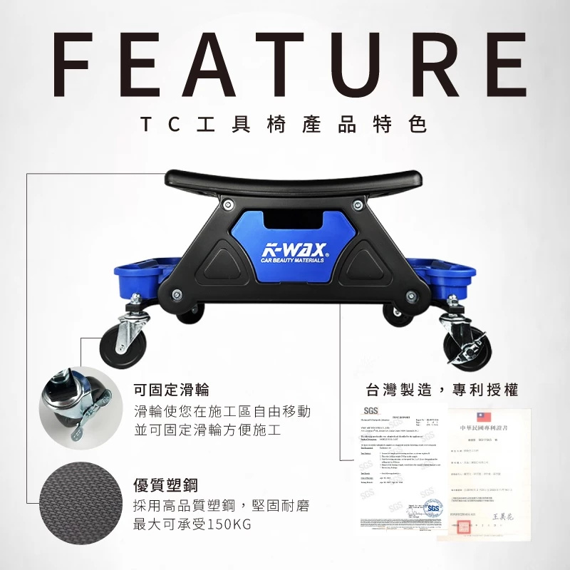 7分鐘前K-WAX TC 工具椅 台灣製造 堅固耐用 工作椅 美容椅 滑輪椅 滾輪椅 洗車椅 - K-WAX TC 工具椅+杯架組 * 1