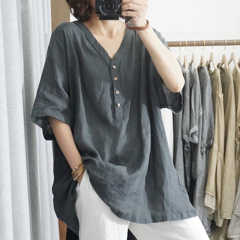4分鐘前【買一送一】時尚寬鬆純棉文藝復古半袖上衣~遮肉顯瘦,舒適材質,柔軟親膚透氣,適合當季! - 精選三入 均價422/件!三色全入! NT$ 1268