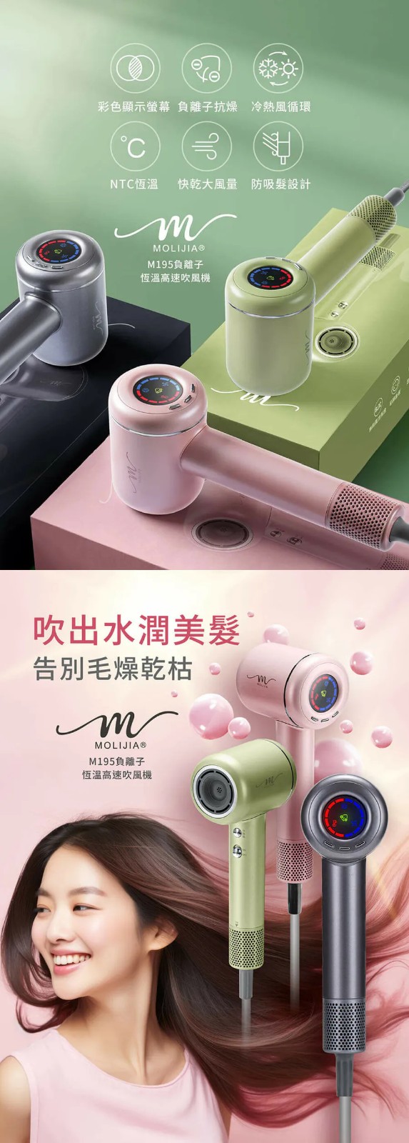 半小時前M195 負離子恆溫高速吹風機 乾髮護髮,一次搞定 - 優惠價一入組NT$1398
