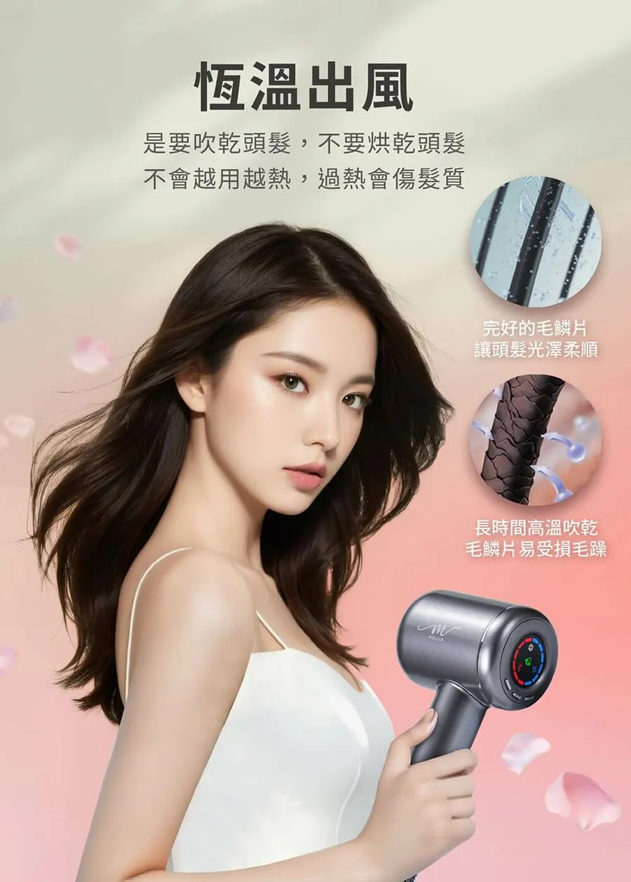 ⭐冷熱自動切換、NTC控溫、恆溫出風保護髮質