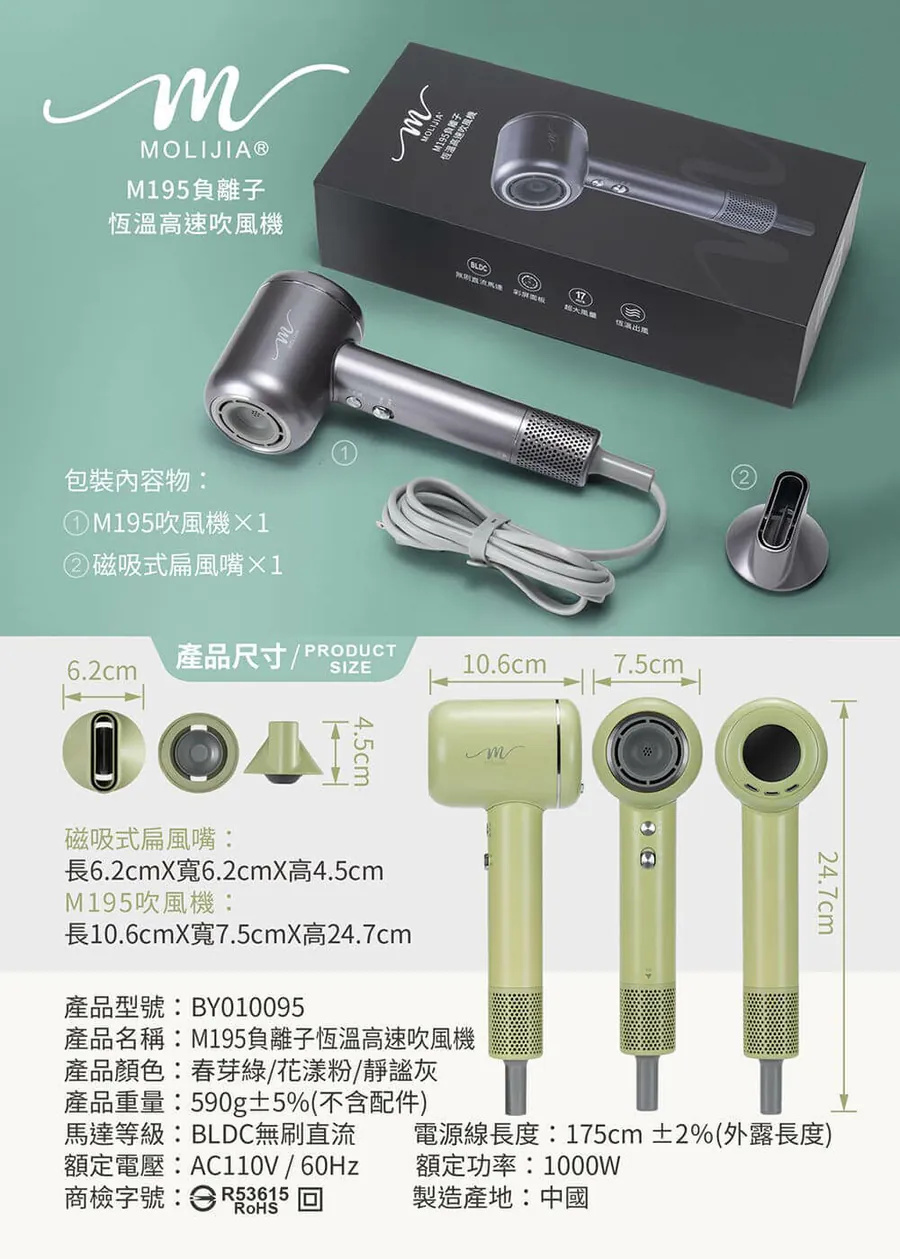 5分鐘前M195 負離子恆溫高速吹風機 乾髮護髮,一次搞定 - 優惠價一入組NT$1398